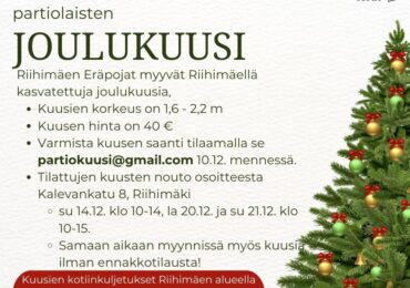 Ostamalla partiolaisten joulukuusen, tuet Riihimäen Eräpoikien partiotoimintaa. Tilaa kuusi 10.12. mennessä niin varmistat itsellesi jouluksi lähellä kasvatetun kuusen. Lisätietoja ja tilaukset partiokuusi@gmail.com.