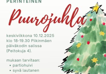 Erätyttöjen ja Eräpoikien Puurojuhlaa vietetään keskiviikkona 10.12. klo 18-19.30 Piikinmäen päiväkodin salissa. Mukaan juhlaan tarvitaan: partiohuivi syvä lautanen, lusikka ja muki noin 2 €:n arvoinen…