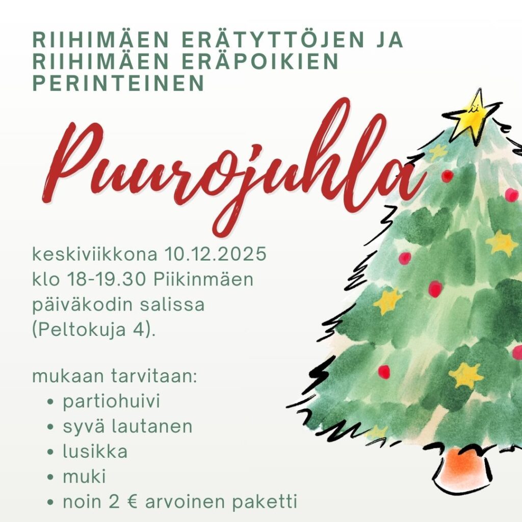 Erätyttöjen ja Eräpoikien Puurojuhlaa vietetään keskiviikkona 10.12. klo 18-19.30 Piikinmäen päiväkodin salissa.